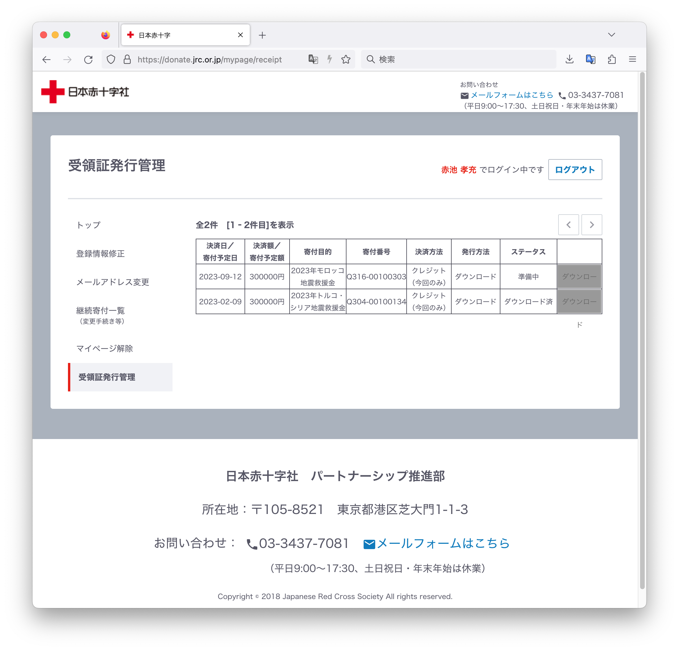 モロッコ大地震災害救援 2023年9月12日 最終更新日時 : 2025年9月5日 あかいけ北アフリカ モロッコの大地震災害救援として30万円を日本赤十字社に寄付しましたhttps://www.jrc.or.jp/contribute/help/2023morocco/